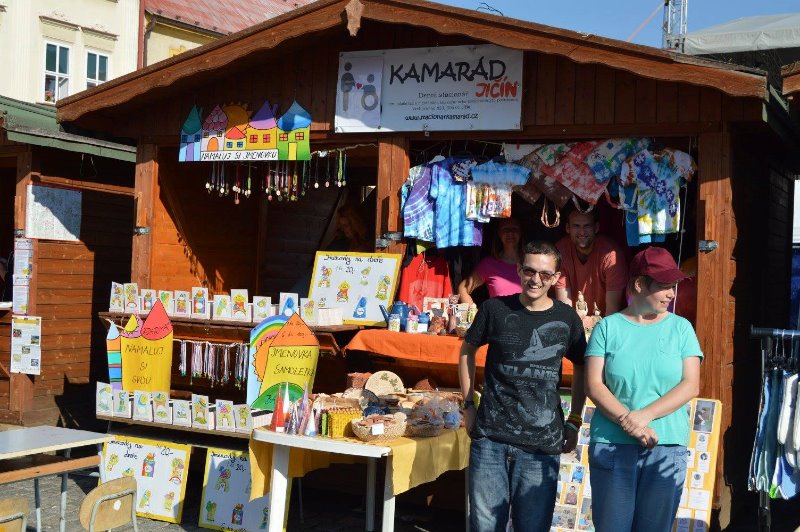 JIČÍNSKO – Od středy 7. září ožilo město Jičín již 26. ročníkem pohádkového festivalu, na kterém nechyběli ani naši kamarádi. Někteří klienti se společně s pracovníky zúčastnili zahajovacího průvodu jízdou na traktůrkách, které nám zapůjčil generální partner festivalu Seco GROUP a.s. Tímto průvodem začala každodenní účast naší organizace na této kulturní akci. Kamarádi hned od prvního dne pomáhali v tvůrčích dílničkách, kde si všechny děti mohly vyrobit klauna nebo čepici. Také ve stánku prezentovali své výrobky. Druhý den jsme všem návštěvníkům na náměstí předvedli naše taneční vystoupení na píseň z Pomády – Parta správná.