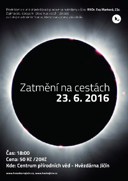V úterý 7. června od 18 hodin se k Jičínu přiblíží Andamanské ostrovy. Poutavou cestopisnou přednášku zájemcům předá aktivní ochránce přírody Mgr. B. Michálek. „O světě, kde se zastavil čas, kde žijí lidé bez elektřiny, jedí pouze to, co si uloví. A život jim naopak ničí vymoženosti moderní doby,“ přibližuje šéf jičínské hvězdárny David Vališka a upozorňuje i na Zatmění na cestách ve čtvrtek 23. června od 18 hodin, kdy přijede přednášet sluneční fyzička E. Marková o (úplném) zatmění slunce, kterého se již mnohokrát zúčastnila.