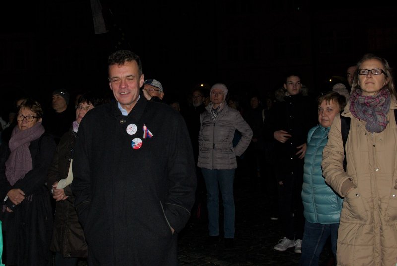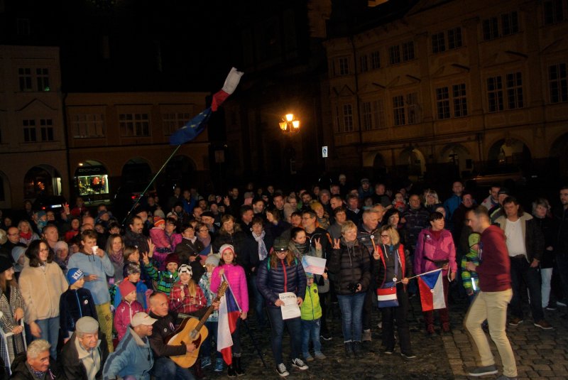 JIČÍN – I takový vzkaz na téma „Co pro vás znamená svoboda“ vepsal jeden z účastníků do kartonového „véčka“ na Valdštejnově náměstí v Jičíně při vzpomínkovém setkání 17. listopadu. To začalo jako tradičně v 17 hodin u kašny s Amfitrité, tentokrát pod záštitou Milionu chvilek pro demokracii a města Jičína. Bezmála čtyři stovky lidí si přišly připomenout události, od kterých nás dělí třicet let. Letos, možná víc než kdy předtím, se potvrzuje, že bez občanské společnosti žádná demokratická společnost nemůže přežít. „Slavit proto nestačí, jak to bude vypadat, záleží prostě jen na nás,“ řekl v Praze Šimon Pánek, studentský aktivista a spoluzakladatel a výkonný ředitel společnosti Člověk v tísni a byl to zároveň i vzkaz pro regiony. I účastníci vzpomínkového setkání v Jičíně věděli, že svoboda nestačí, že je za tím další nekonečná práce. Dobré zprávy děkují, že jste přišli a omlouvají se, že jste se jim na společný snímek z malého nadhledu prostě všichni nevešli.