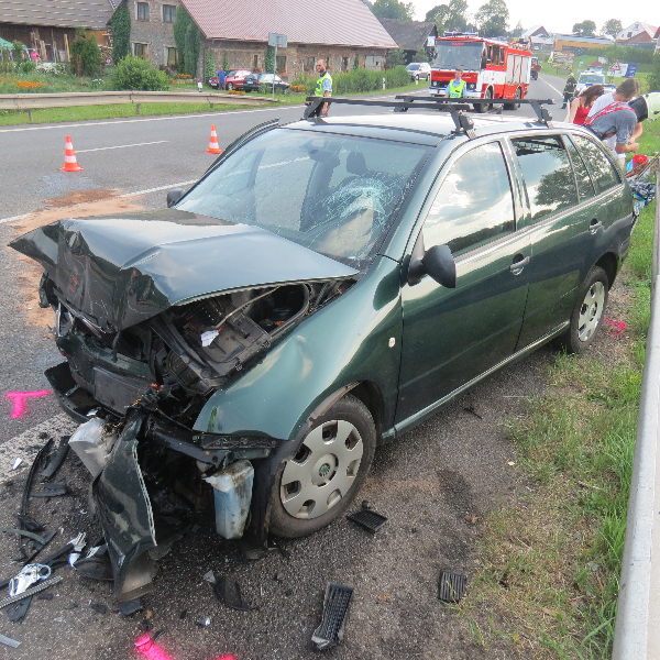 VIDOCHOV – K jedné z nehod došlo v neděli 20. července odpoledne ve Vidochově. Čtyřiačtyřicetiletý řidič osobního auta Škoda Fabia jel ve směru od Nové Paky, kdy v mírné pravotočivé zatáčce přejel z dosud nezjištěných příčin do protisměru, kde se čelně střetl s vozem Citroen C4. Při nehodě utrpěli řidič škodovky a jeho spolujezdec lehká zranění, se kterými byli převezeni do jičínské nemocnice. Tam skončil s lehkým zraněním i řidič druhého auta a jeho spolujezdec. Alkohol u obou řidičů vyloučila dechová zkouška, celková škoda byla vyčíslena na 160 tisíc korun.